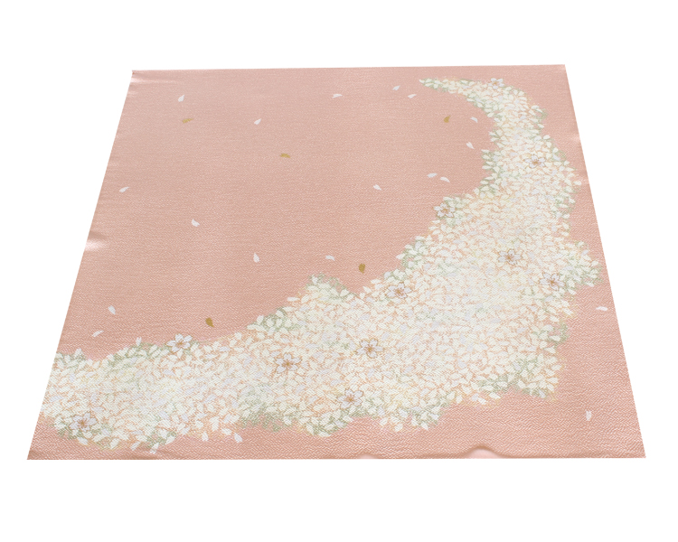 咲き乱れる桜を風呂敷全体にあしらった一枚です。桜は古くからどの時代も愛されてきましたが、文様に表されるようになったのは平安時代頃。最近では写実的な文様の着物以外は、季節を問わず用いるようになりました。季節を問わず、ご愛用下さい。