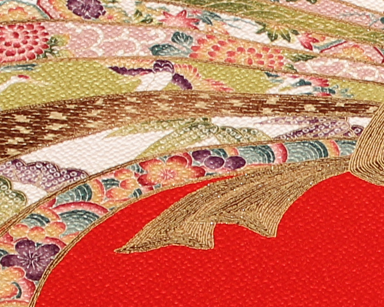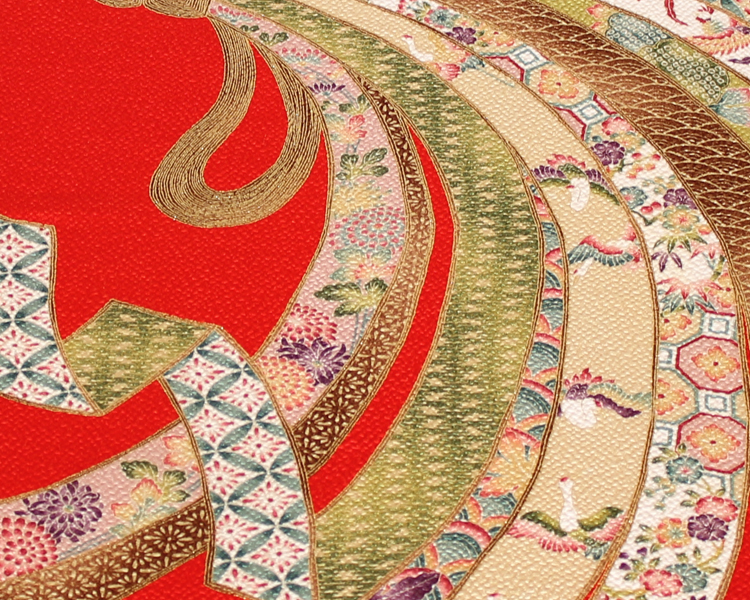 千總の風呂敷は、すべて絹100%の丹後ちりめんを使用しております。絹のもつ光沢をやわらかくおさえ、丈夫でしなやかな感触と、しっとりとした風合いを引き出し美しく色鮮やかな発色性にすぐれております。