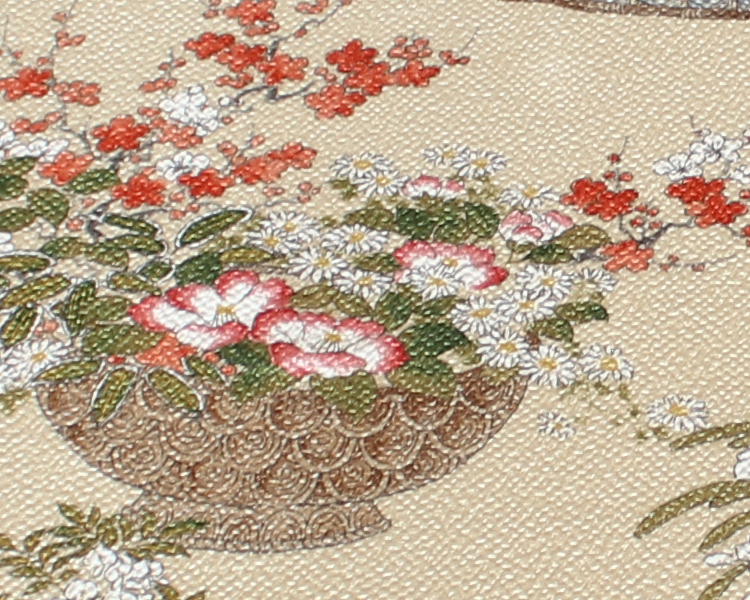 様々な花を竹で編んだ籠に盛った形を文様化したものです。