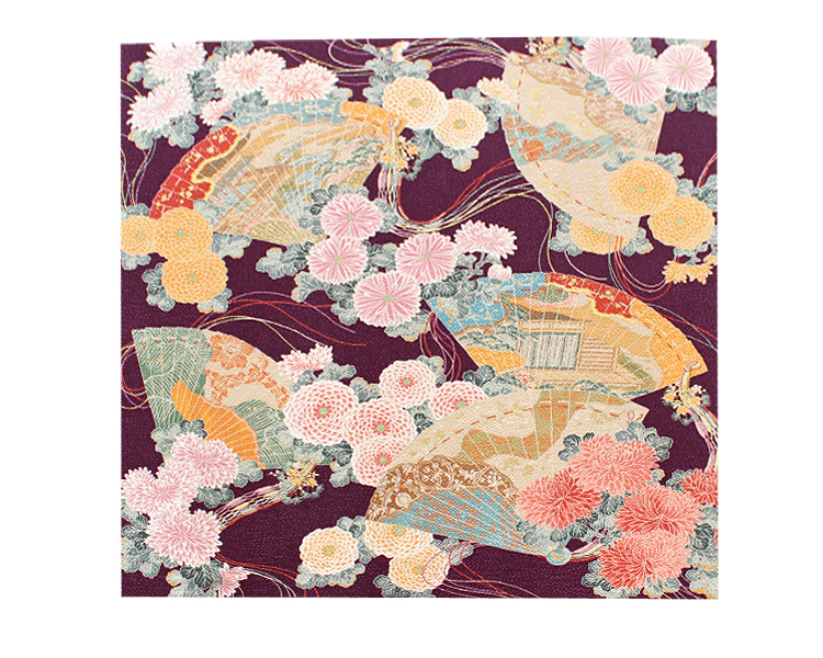 千總の風呂敷は、すべて絹100%の丹後ちりめんを使用しております。絹のもつ光沢をやわらかくおさえ、丈夫でしなやかな感触と、しっとりとした風合いを引き出し美しく色鮮やかな発色性にすぐれております。