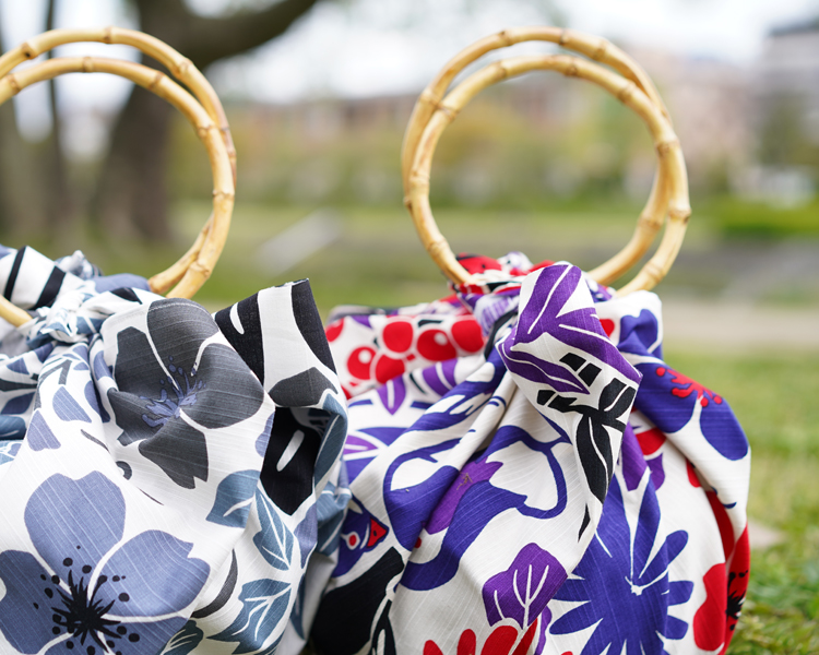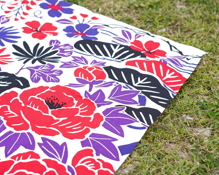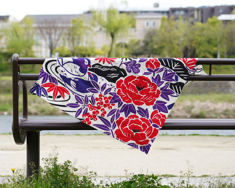 綿は吸水性が良く、取り扱いが容易なため、もっとも一般的に用いられいる天然素材です。 染工場の職人たちと何度も繰り返し、発色の良さの研究を重ねたこだわりの綿風呂敷です。
