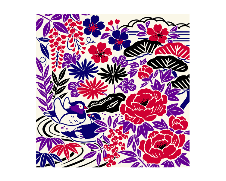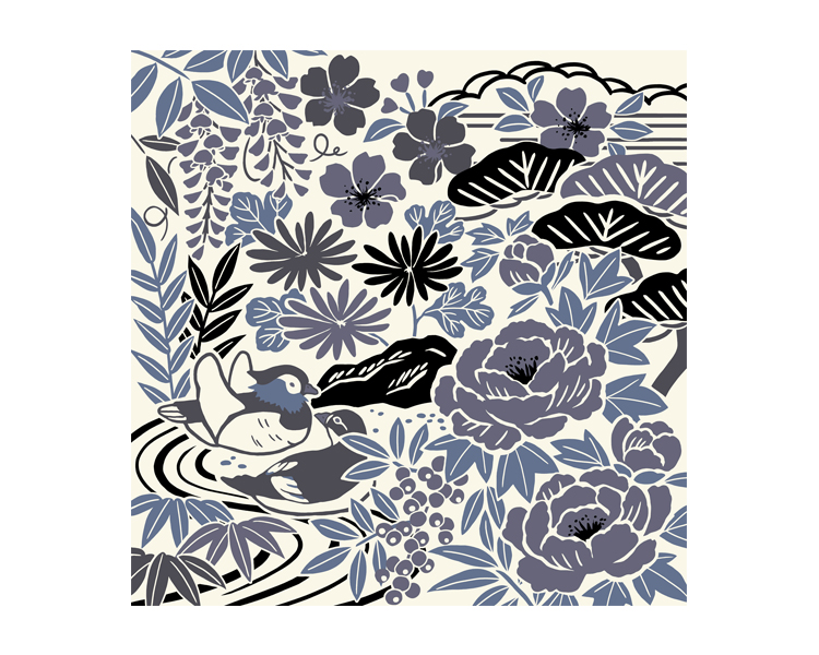 夫婦和合の象徴 おしどり 冨貴の花 牡丹 など特徴あるモチーフを取り入れることで様々な願いを包めるデザインにしました。
