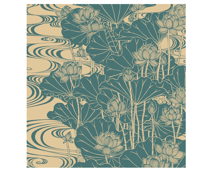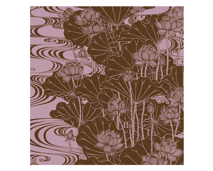 蓮は花と実を共につけて育つ生命力の強さをもつことから豊穣の象徴とされています。神に供える花でもあり、美しい花を咲かせることから、気品ある美しい女性を喩える意味も込められています。どんな包み方をしても蓮の花が見えるように配置しております。