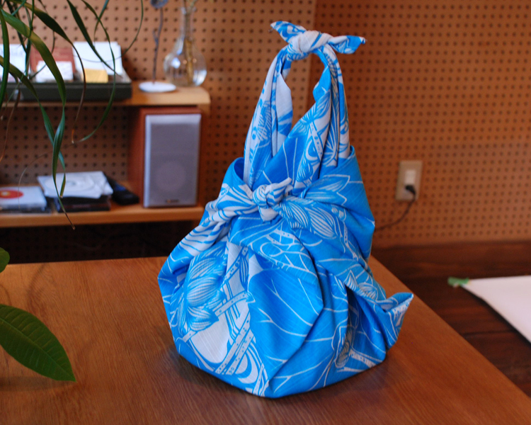 綿風呂敷はお弁当包みからエコバッグなど普段の生活の中で幅広く用いられ、 二巾(約71cm X 73cm)は一升瓶を包むのやエコバッグなど普段使いにも適しています。