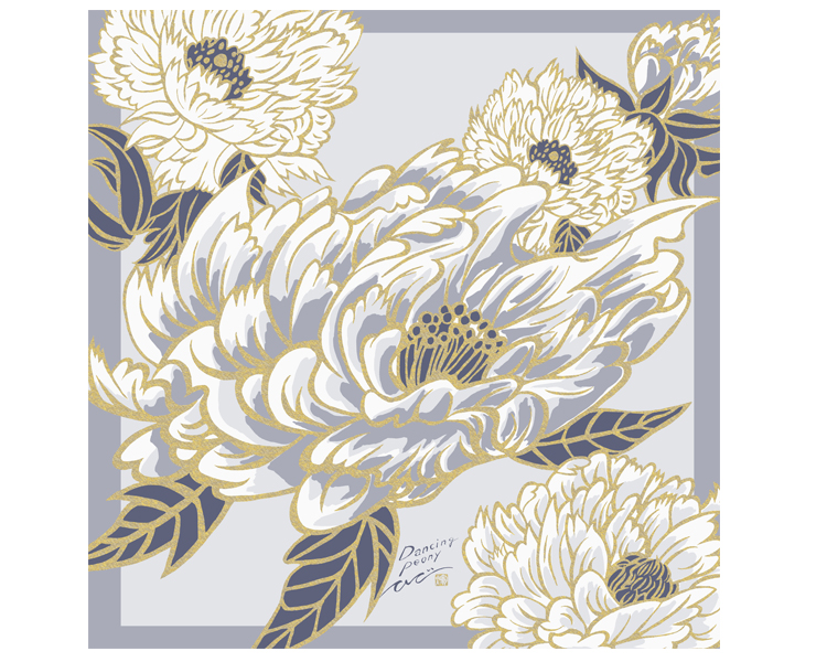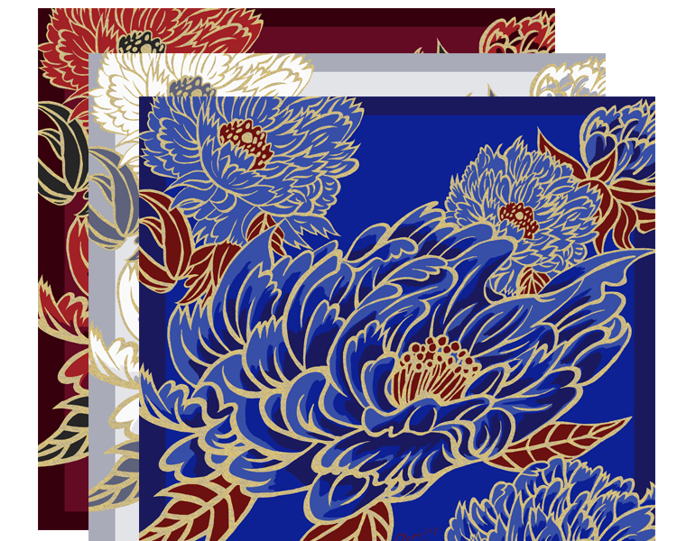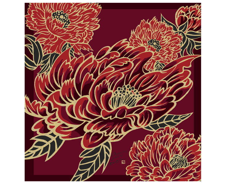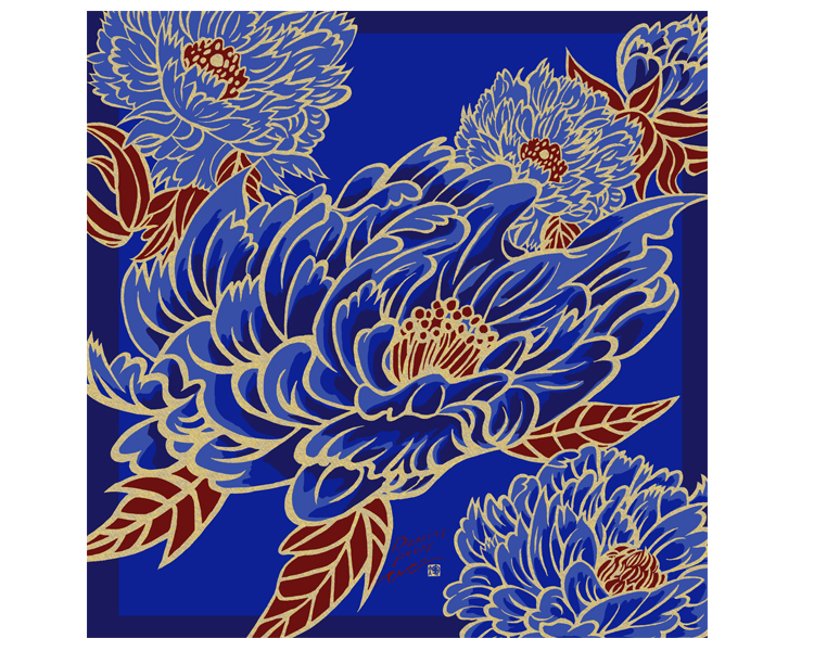 牡丹の図案を全面に配した二四巾の風呂敷。