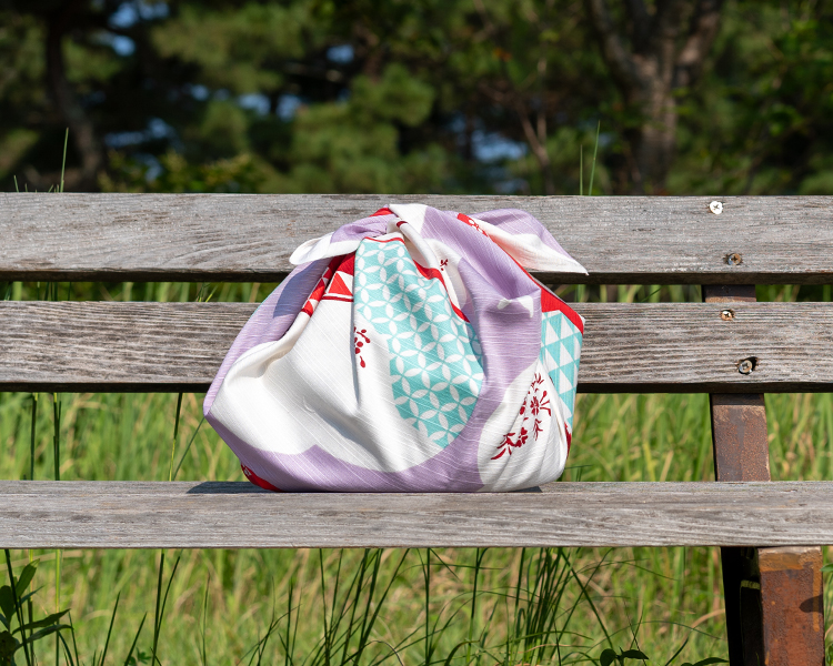 綿風呂敷はお弁当包みからエコバッグなど普段の生活の中で幅広く用いられ、 二巾(約71cm X 73cm)は一升瓶を包むのやエコバッグなど普段使いにも適しています。