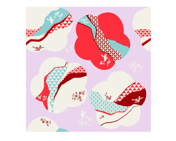 雅やかさの象徴「継紙紋様」と、香り高く咲く生命力・繁栄の象徴である「梅」を組み合わせてモダンにアレンジしたこのデザインは、
